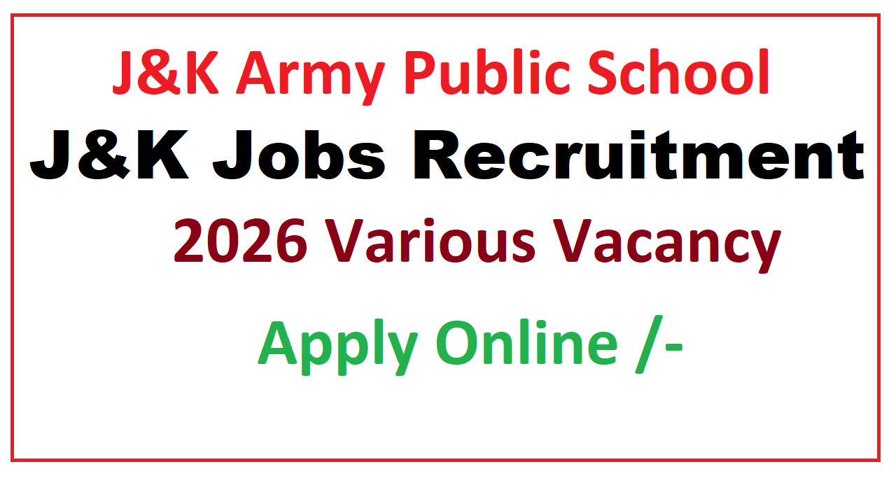 J&K Army Public School Recruitment 2026: Apply Online
