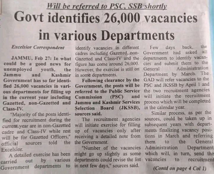 2. 26000 Posts Referred to Jkssb and jkpsc