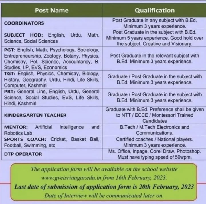 How to Apply for Green Valley Educational institute Srinagar Jobs 2023 for the Teaching and Support staff?
