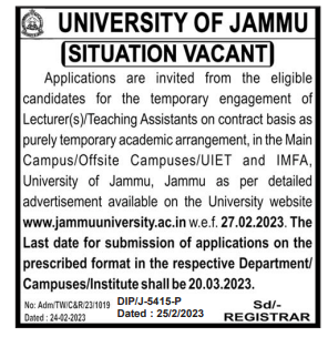 Jammu University Jobs Recruitment 2023