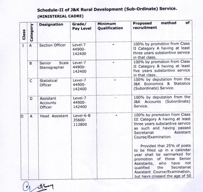 Now, therefore, in light of the above, the draft amendments in the existing Jammu and Kashmir Rural Development (Subordinate) Service Recruitment Rules, 2023, i.e. Schedule-I and II of Ministerial as well as Executive/Technical Cadre, is hereby uploaded on the departmental official web site for inviting objections from the concerned per