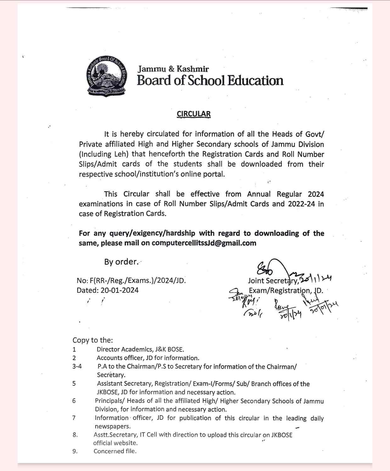 JKBose Class 10th 11th & 12th Roll Number Slips Download The Jammu and Kashmir Board of School Education (JKBOSE) has introduced a new online portal for registration cards and roll number slips/admit cards. This move is aimed at making the process of obtaining these documents more convenient for students and schools. Starting from the Annual Regular 2024 examinations, students will be able to download their registration cards and roll number slips/admit cards from their respective school/institution’s online portal. This will eliminate the need for students to collect these documents in person from their schools.