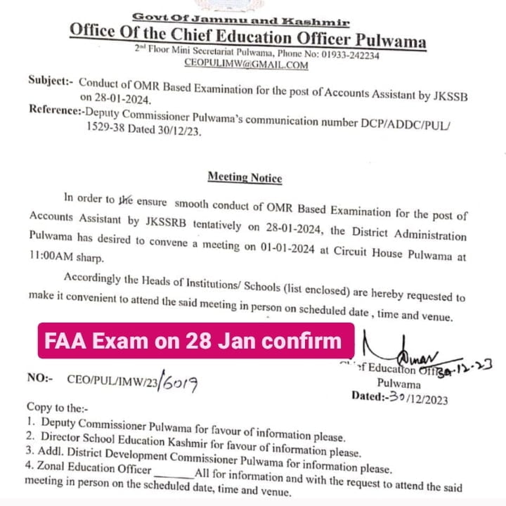 JKSSB Announced FAA Finance Account Assistant Final Exam Date