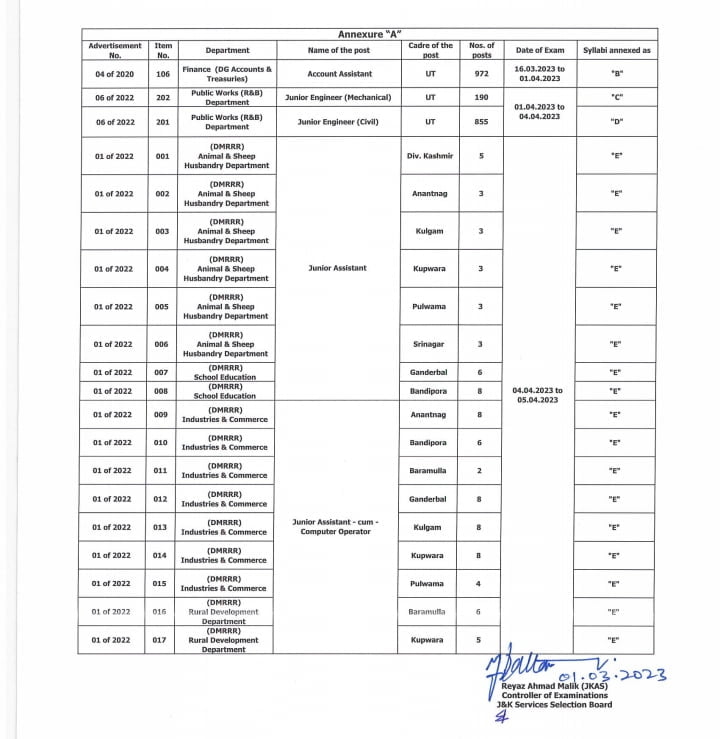 The JKSSB conducts exams for posts such as Junior Engineer, Junior Assistant, Sub-Inspector, Assistant Compiler, Accounts Assistant, and many others. The recruitment process includes a written exam followed by an interview or a skill test.