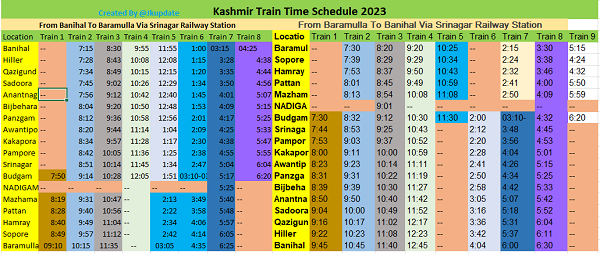 New Train Timing Kashmir 2023-2024 Train Timetable