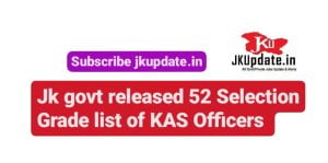 Selection Grade of 52 KAS Officers Check Here : Issuing two separate orders, Government today released Special Scale (Non-Functional) in favour of 36 officers of Jammu and Kashmir Administrative Service (JKAS) and Selection Grade (Non-Functional) in favour of 52 others with effect from 01-01-2023 Click here for Jkupdate Android app download 52 KAS Officers Selection … Continue reading Selection Grade of 52 KAS Officers Check Here