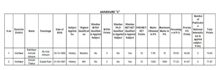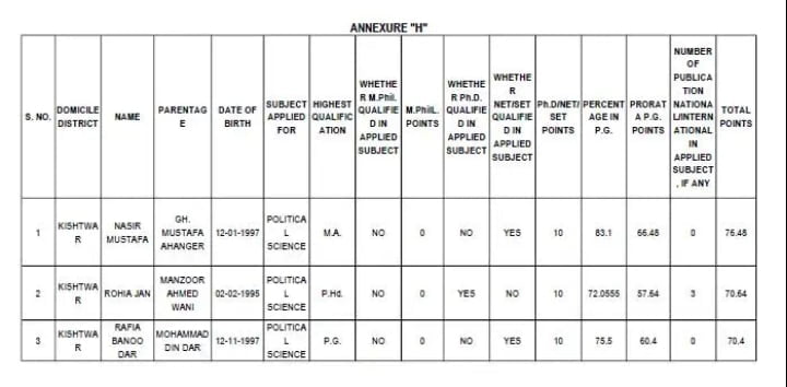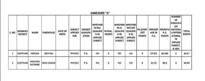 GOVT SCHOOL TEACHERS SELECTION LIST OUT FOR KISHTWAR DISTRICT